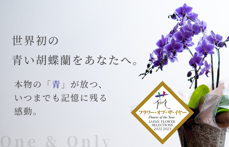 世界で初めて天然の青色を叶えたコチョウラン「Blue Gene(ブルージーン)」。